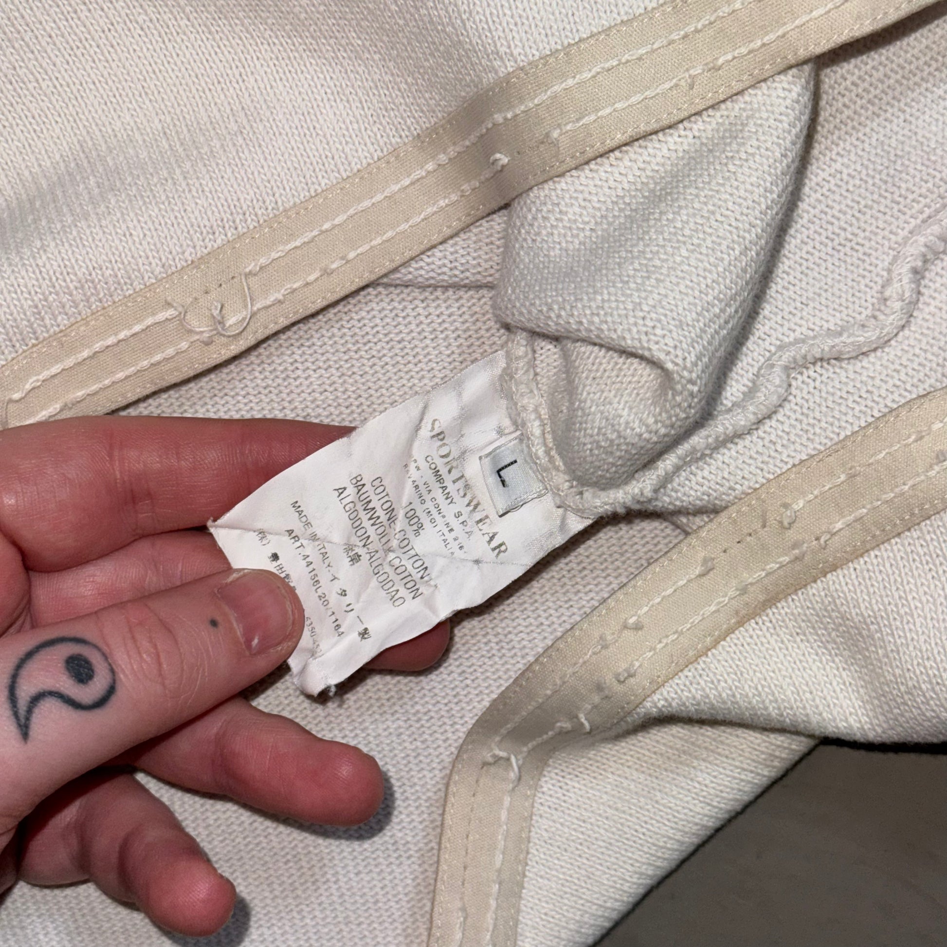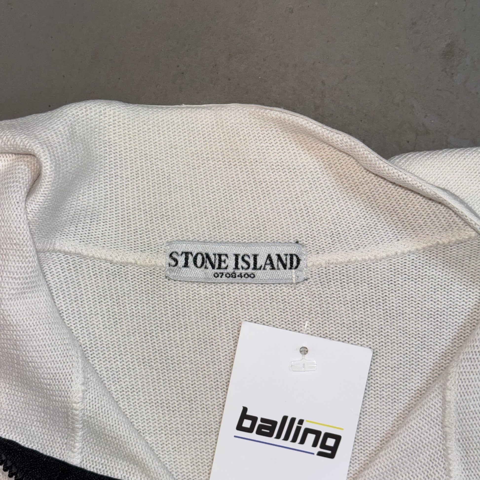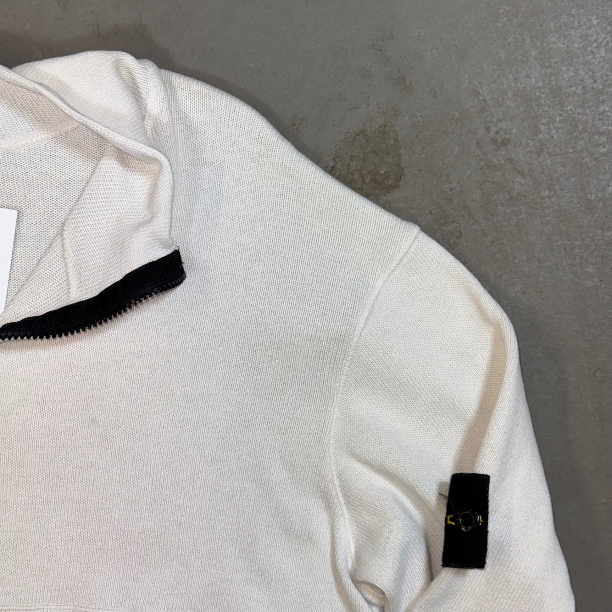 Stone Island knit 1/4 zip in white. Some loose threading on the sleeve inside the cuffs.