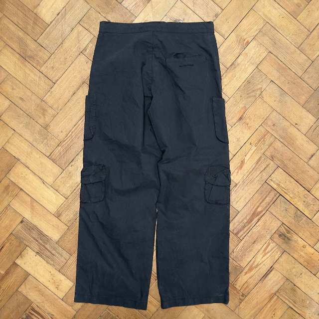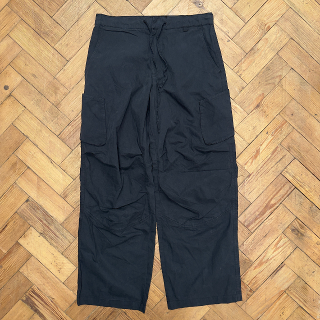 Broken Planet cargo trousers in navy with minimal branding except for a small embroidered spellout.
