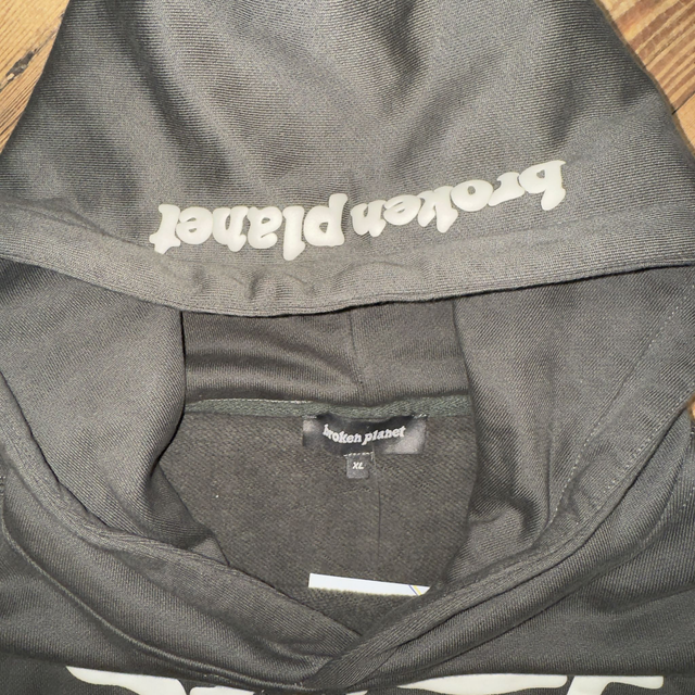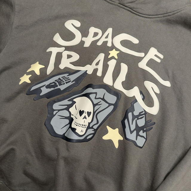 Broken Planet Space Trails hoodie in dark grey with iconic puff print graphic on the front and hood. Made from high quality materials.