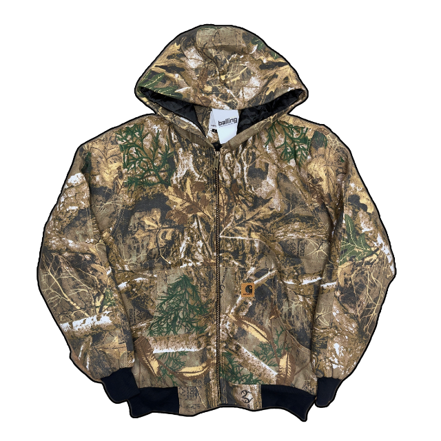 Carhartt Real Tree workwear jacket in green with a classic camo pattern all over.