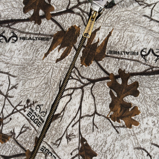 Carhartt Real Tree workwear jacket with an all over snow camo print. Made from high quality materials. Featuring full zip enclosure.