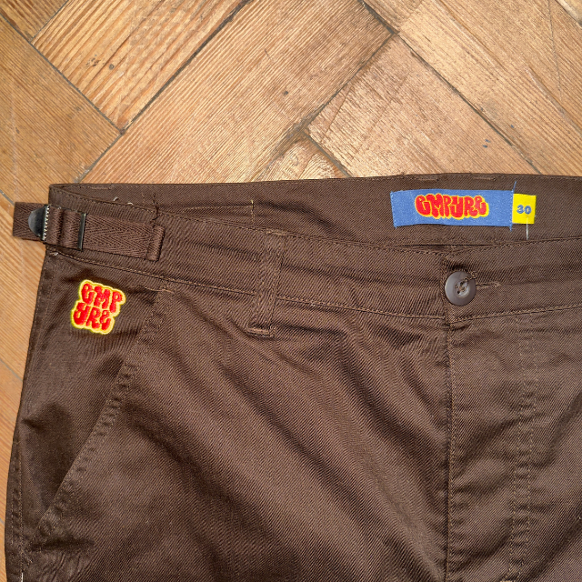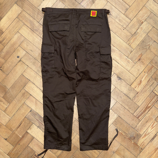 Empyre cargo trousers in brown with embroidered branding throughout.