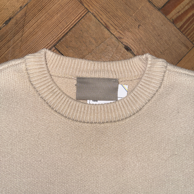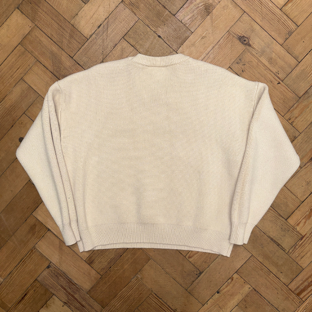 Essentials knit jumper in cream with black sewn spellout on the front.