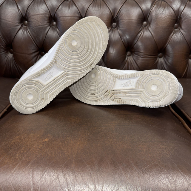 Supreme X Nike Air Force 1 in white, an iconic shoe with box logo print on both shoes. Comes with box and spare laces.