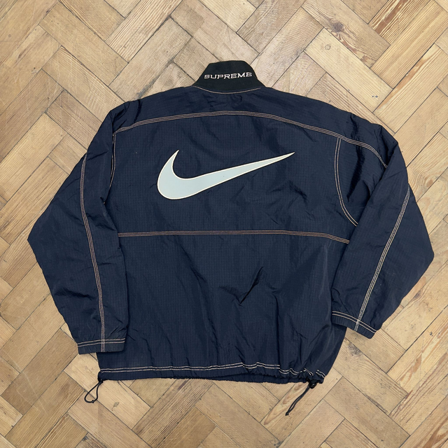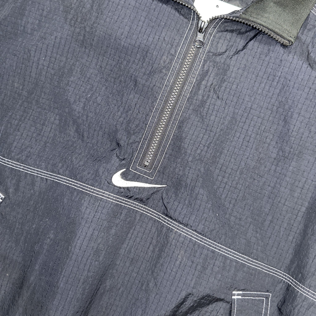 Nike X Supreme ripstop pullover jacket in black. Featuring embroidered logo on the front and large embroidery on the back, complete with spellout hit on the nape. Made from high quality materials.