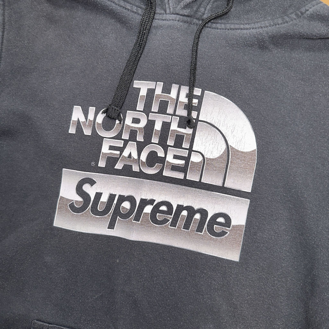 North Face Supreme hoodie in black with graphic print on the front and small hit on the back. Iconic collab made from high quality materials.