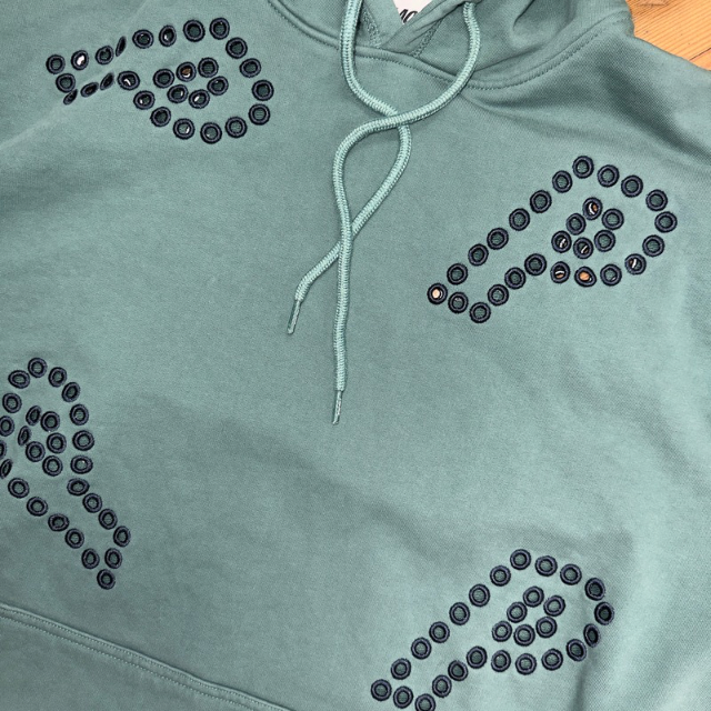 Palace hoodie in a green colour. Featuring many eyelets all over forming the classic ‘P’ logo. Made from high quality, heavyweight materials.