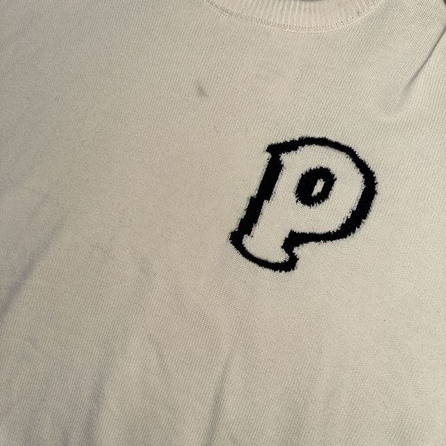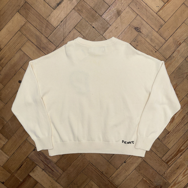Picante knit jumper in beige with sewn in logo on the front and small spellout on the back. Made from heavyweight materials with a boxy fit.