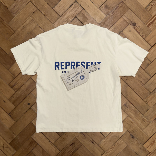 Represent tee in cream with small graphic print on the front and large print on the back. Made from high quality materials.