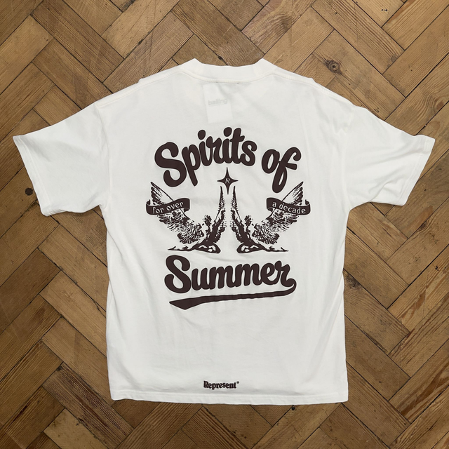 Represent Spirit of Summer tee in white with small print on the front and large graphic print on the back.
