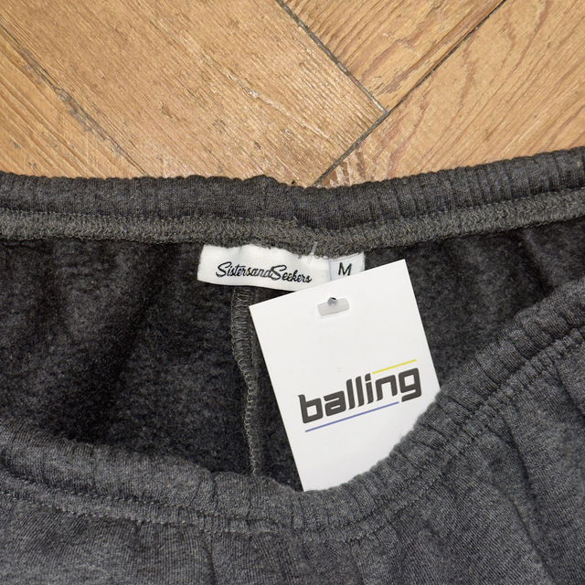 Sisters & Seekers joggers in dark grey with smell graphic on the front.