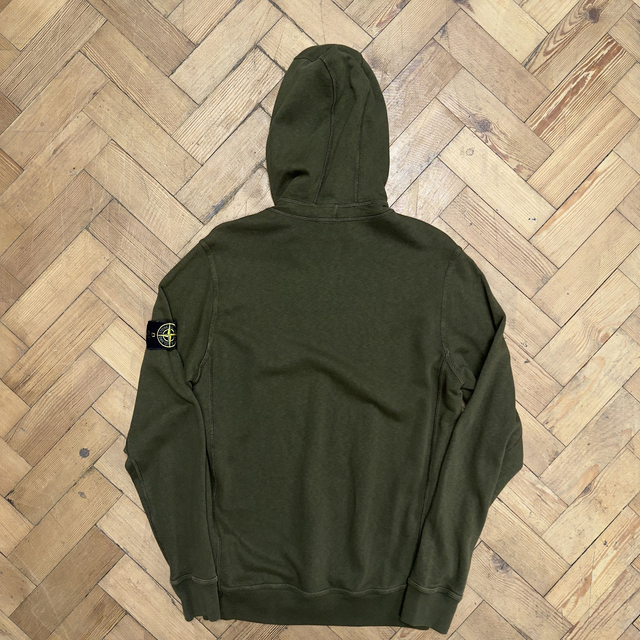 Stone Island hoodie in green made from high quality materials, and featuring the iconic removable patch on the arm.