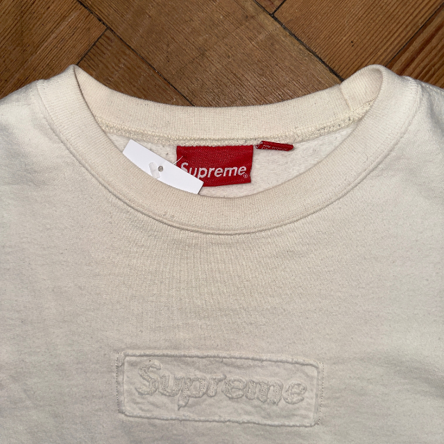 Supreme Natural box logo jumper in white with iconic logo on the front.
