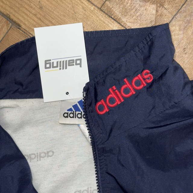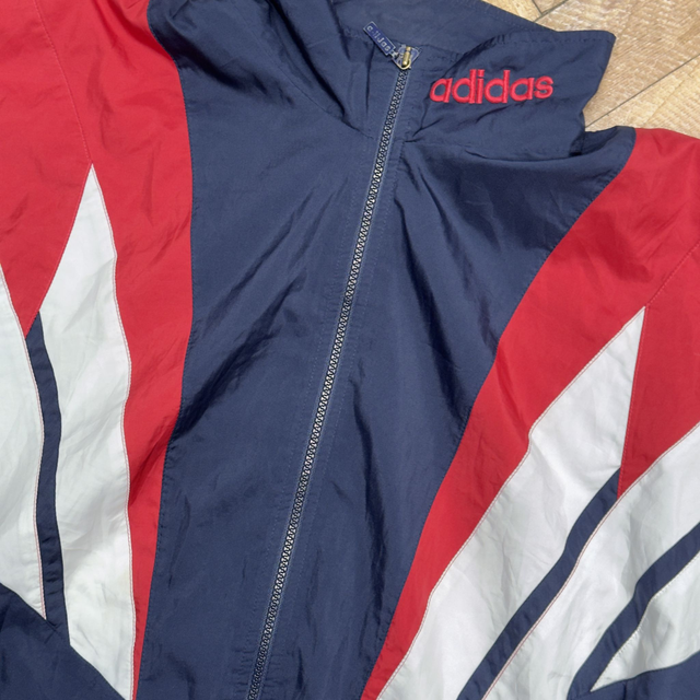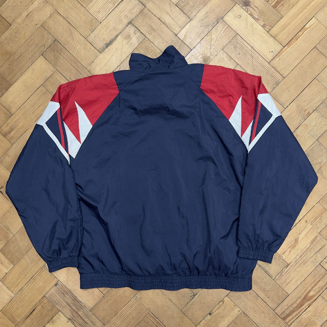 Vintage Adidas track jacket in navy, red and white.