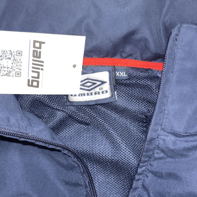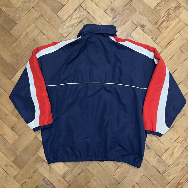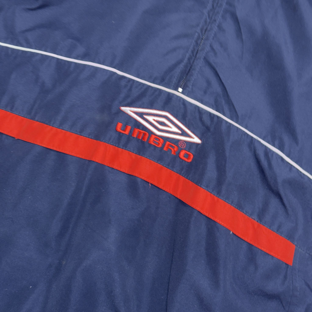 Vintage Umbro track jacket in navy with red and white detailing all over.