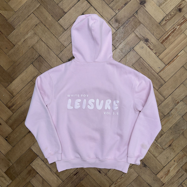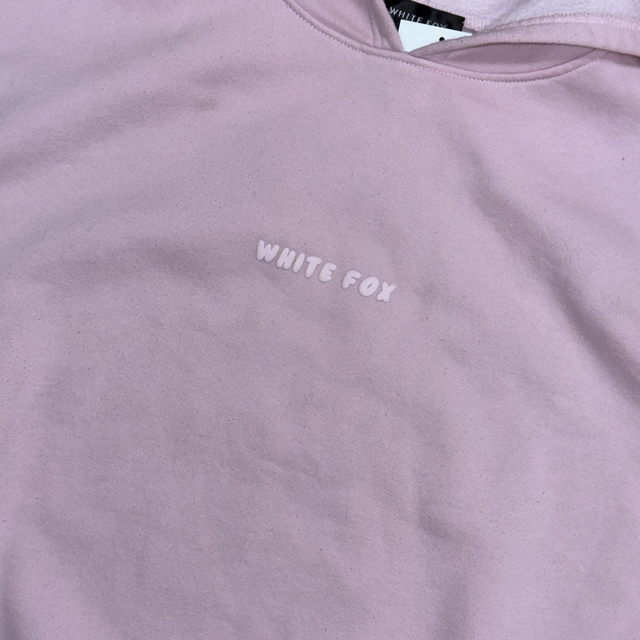 White Fox hoodie in pink with iconic puff print graphic on the front and back.